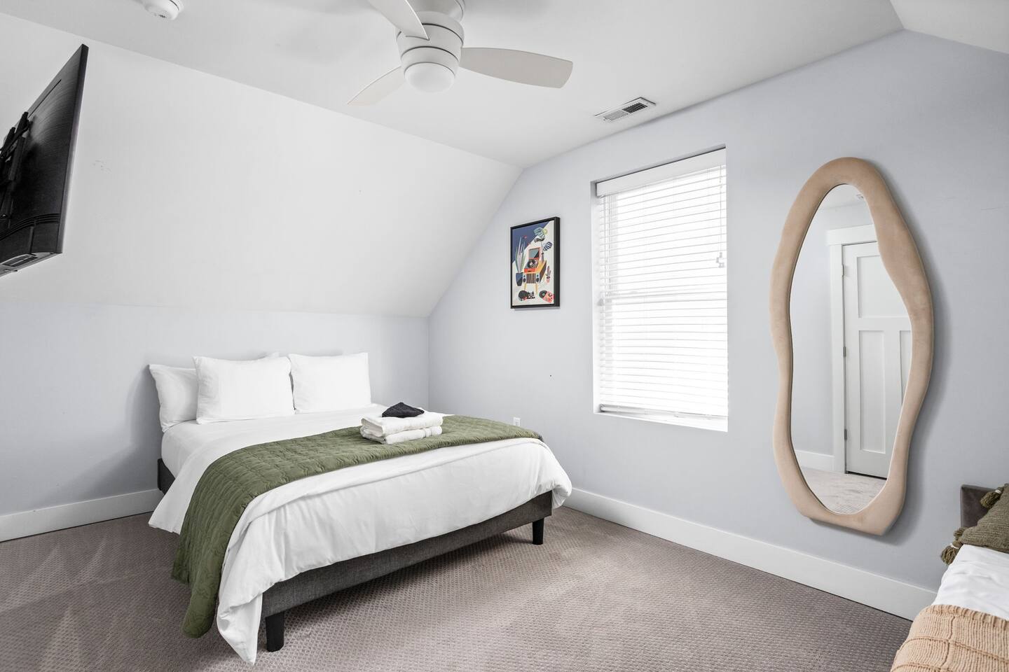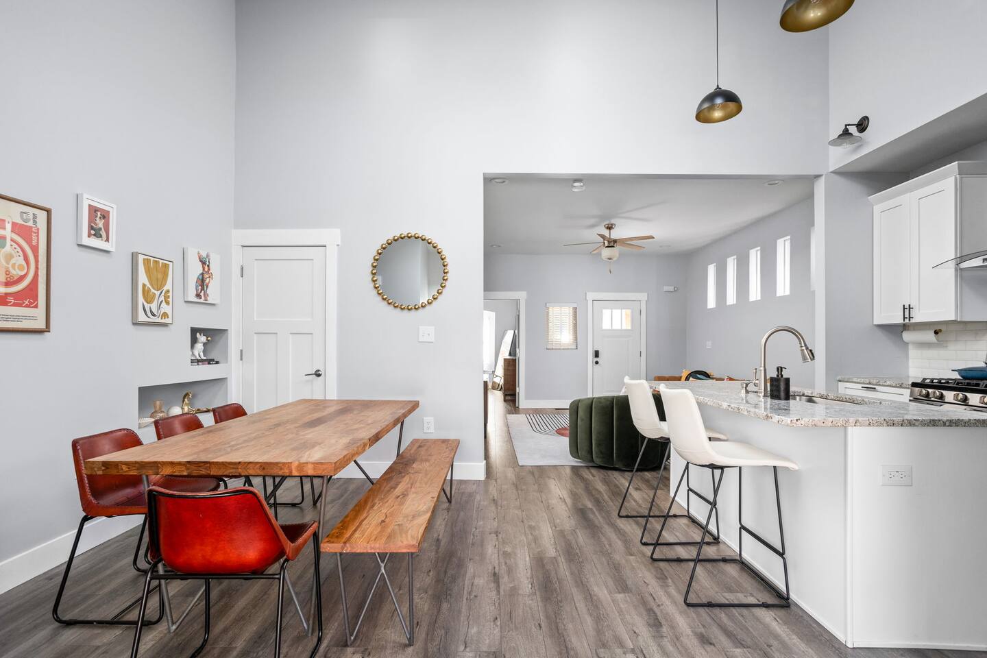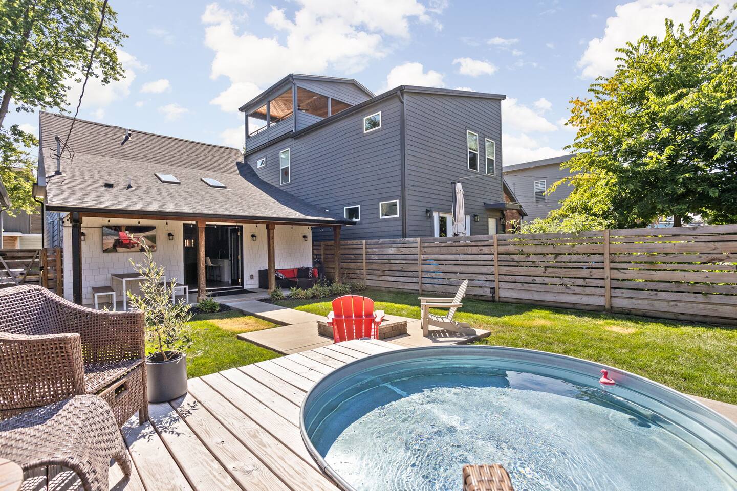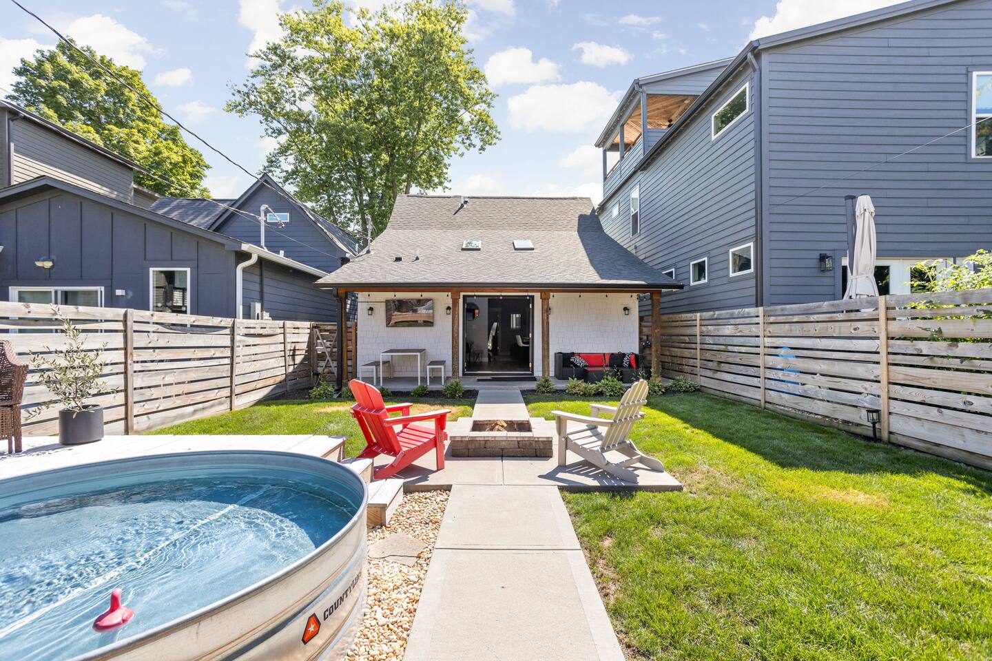 Discover your perfect retreat in Fountain Square, Indianapolis! This stylish home offers 3 bedrooms and 2.5 baths and up to 8 guests, providing ample space and comfort. AT A GLANCE: Sleeps 8: 3 beds (1 King,2 Queen), day bed, fold-out twin, air mattresses 🛏️ Full dining table seating 8 & counter bar for 2 🍽️ Keyless entry with individual codes 🚪🔑 1GB Wi-Fi & 10 TVs throughout 📺🌐 Fully equipped kitchen & coffee bar (Keurig & Nespresso) ☕🍽️ Laundry available 🧺, full-length mirrors, Dyson-style hair tools 💇♀️ Private backyard with stock tank pool, firepit, grill & outdoor fun! 🌊🎯 Garage features arcade games & outdoor activities 🎮🏆 One garage parking spot + free street parking 🚗🅿️ Just 2 miles from downtown Indy 📍 LOCATION DETAILS: Lucas Oil Stadium - 2.5 miles Gainbridge Fieldhouse - 1.9 miles Indiana Convention Center - 2.8 miles Indianapolis Motor Speedway - 8.3 miles Indianapolis Zoo - 3.1 miles IUPUI - 3.2 miles All downtown attractions that Indy has to offer - just a short uber ride usually costs between $8-$10 (can be more during busy events). You'll be walking distance to vibrant Fountain Square shops, dining, and nightlife. THE HOME We’ve fallen in love with Indy and its vibrant Fountain Square neighborhood, full of unique shops, lively music, and great food — all just 1.2 miles away! Inside, you'll find a thoughtfully designed mid-century modern home, blending style and comfort. Each bed offers a different experience to suit your perfect sleep — from firm to soft. The seamless indoor-outdoor living space is ideal for enjoying Indy’s great weather, while cozy indoor areas provide plenty of fun and relaxation during cooler days. ROOMS Each bedroom is filled with natural light, enhanced with fans and shades for ultimate comfort. Enjoy your own TV for private viewing, along with premium mattresses from Nectar and Helix, plush linens, and ample storage with luggage racks. Luxurious duvets and two pillows per person complete the cozy, hotel-quality sleeping experience. Perfect for restful nights after your busy days exploring Fountain Square and Indianapolis! 🛏️ Room 1: 1 King Bed 🛏️ Room 2: 1 Queen Bed, Twin Chair Foldout, Air Mattress 🛏️ Room 3: 1 Queen Bed, Twin Day Bed, Air Mattress Room 1 - 1 King Bed | Master First-floor master suite featuring an private en suite bathroom, walk-in closet, and a spacious walk-in shower. The suite also boasts a charming bay window with a cozy seating area, perfect for relaxing or enjoying your morning coffee. The King Mattress is the Helix Luxe (my favorite mattress), Brooklinen Duvets, Standard Textile Pillows and Dyson-style hair tools. 🛏️ Room 2 - 1 Queen Bed, Twin Chair Foldout, Air Mattress This room has a gorgeous Crate and Barrel bed with a Nectar mattress to sink into for a great night's sleep. A wayfair chair is easily avaialble for a twin bed as well. Need to get some work done? A dedicated workspace is avaialble with a monitor if you dont travel with mulitple screens. 🛏️ Room 3 - 1 Queen Bed, Twin DayBed, Air Mattress This room offers a spacious closet, a medium-firm Helix mattress, and a versatile Wayfair Daybed with a Zinus mattress. It’s ideal for multiple guests to relax and enjoy a restful night’s sleep together. We have carefully curated the entire experience with things that we love and some new ones we found! Hope you enjoy your stay.